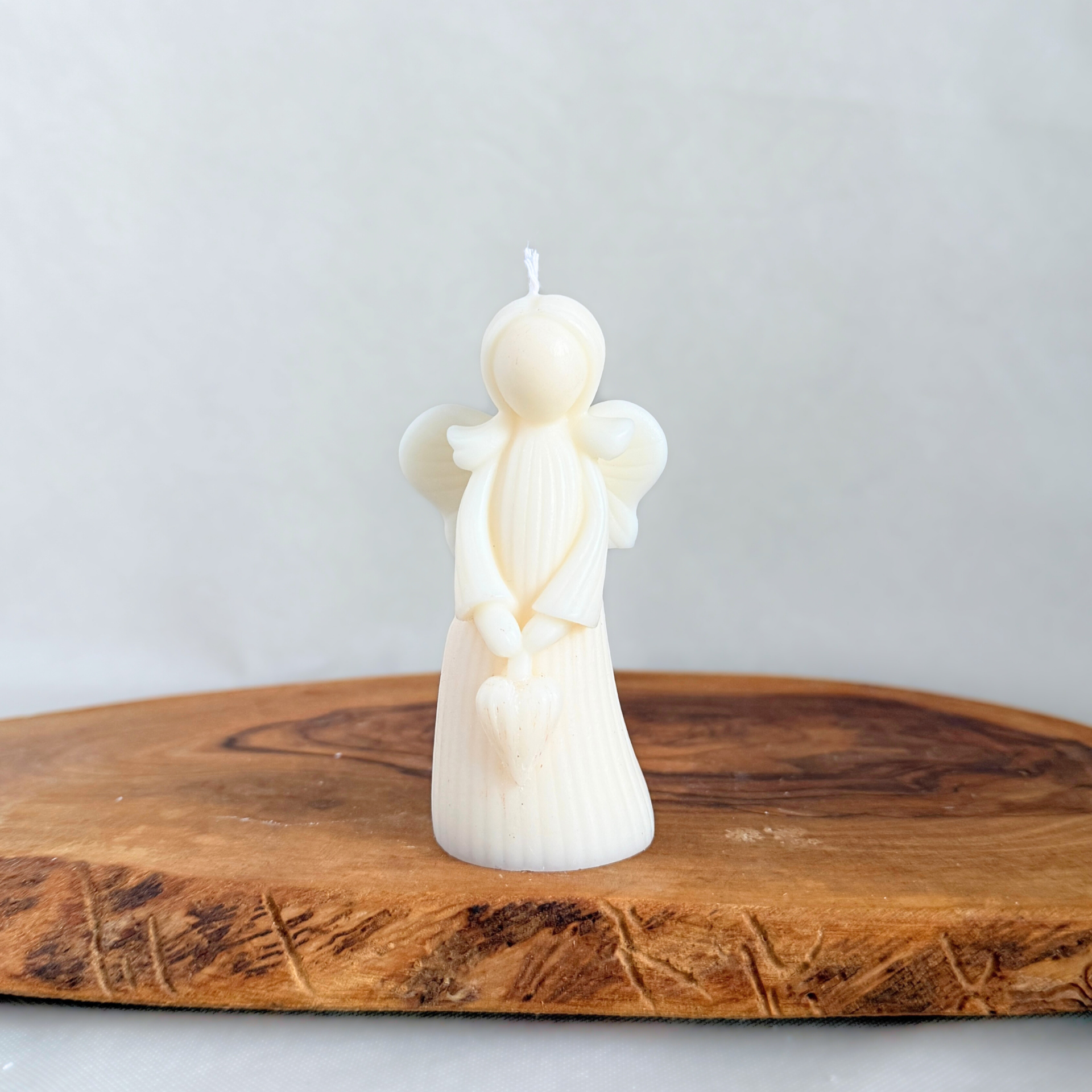 Een zacht, sierlijk engeltje dat rust en warmte uitstraalt.
